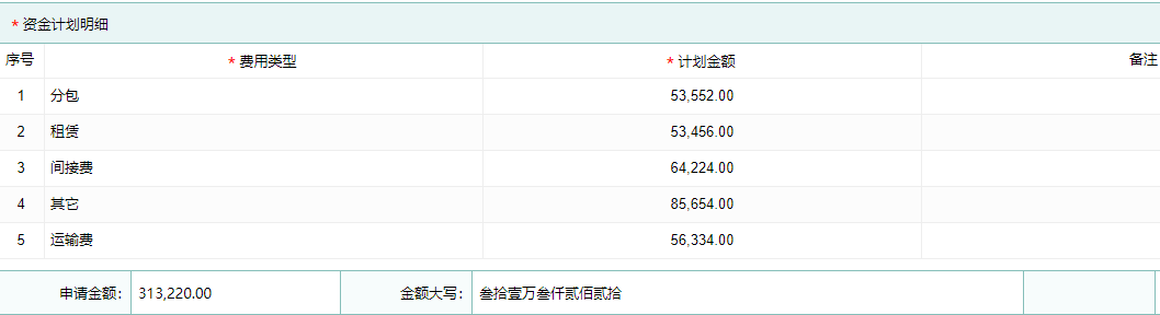 1、在建米系统支出资金业务单据中,主要记录关于各项目的计划信息,比如资金计划的计划月份、申请金额、填报人、费用类型明细等详细内容,同时项目人员在需要进行支出的时候可以查看关于该项目是否有自己计划,从而决定是否消费。